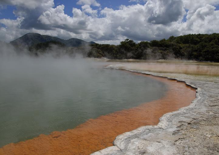 Keywords: hot source source thermal nature country landscape clouds new zealand water fog lake