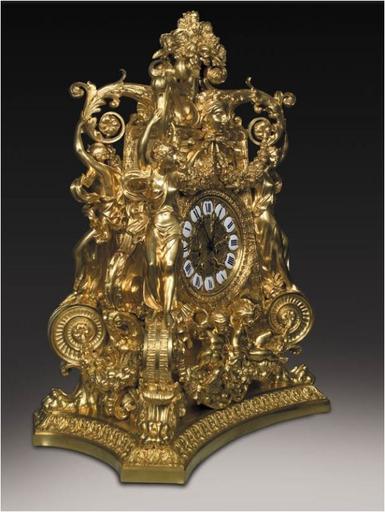Keywords: Hôtel de Monaco – Pendule - A.-J. Fédel – Réalisation (trois-quarts avant).JPG Pendule à poser <br>Ce boitier en bronze doré est richement décoré De trois-quart avant schématiquement rectangulaire les motifs qui constituent les faces sont disposées selon deux arcs concabes qui donnent beaucoup de volume à cette pendule Les ornements sont les mêmes ur la face et le dos<br>En bas un masque central permet à deux putti ailés demi-allongés de s ™accouder Nus ils ont simplement ceint chacun un tissu De leur autre main ils se tiennent un long parchemin qui décrit des courbes <br>De chaque côté du cadran se trouve une femme debout vêtue à l ™antique et coiffée d ™une couronne de fleurs De son épaule extérieure fait issu le drapé de la robe qui constitue le bord extérieur de la pendule Sa main à l ™extrémité d ™un bras gracile soutient une palme De l ™autre côté son épaule porte une guirlande qui entoure le cadran et se joint à l ™autre vers le ciel au centre Chaque main tendue désigne en haut un masque central identique à celui du bas <br>Le quadran est habité de six putti <br>Les deux aiguilles désignent des chiffres romains gravés jusqu ™Ã XII sur des plaques émaillées 1838 Technique gilt bronze Size cm 76 101 LangSwitch deep 53 cm profondeur 53 cm place of discovery object history ProvenanceEvent 1838 commission William Williams-Hope Paris ProvenanceEvent sale Galerie M N Uzal Paris exhibition history credit line Cette horloge est dessinée avec sa cheminée dans un album acquis et probablement constitué par le bronzier Pierre-Maximilien Delafontaine Cet album est visible au musée des beaux-arts de Rennes La cheminée est toujours en place dans un salon du premier étage de l ™hôtel de Monaco<sup>Magny</sup> Le dessin est répertorié dans la base Joconde du ministère de la culture français<br><br> cite book Françoise Magny Délégation à l'action artistique de la Ville de Paris Hôtel de Monaco puis de Sagan ancien 131 rue Saint-Dominique - actuel 57 rue Saint-Dominique Le faubourg Saint-Germain la rue Saint-Dominique hôtels et amateurs 978-2-905118-00-4 Paris 1984 137 142 fr fr Magny <br> 00000070731 accession number place of creation Paris http //www artfinding com/256/Galerie-MN-Uzal/4223/PENDULE-DE-CHEMIN C3 89E Galerie M N Uzal PD-Art Uploaded with UploadWizard Pendule of Hôtel de Monaco after 1838 94 |