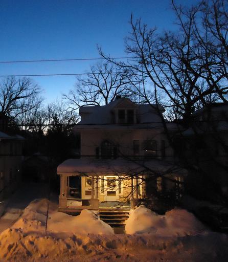 Keywords: House at dawn in snow with blue sky in February.JPG en Early light in the morning with house and trees and blue sky in the wintertime 2014-02-16 18 07 44 own Tomwsulcer cc-zero Uploaded with UploadWizard Winter Summit New Jersey Houses in New Jersey |