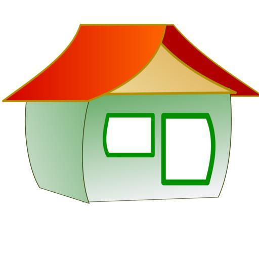 Keywords: house home green walls white window door red roof shapes triangles squares residential property residence building exterior construction architecture colorful