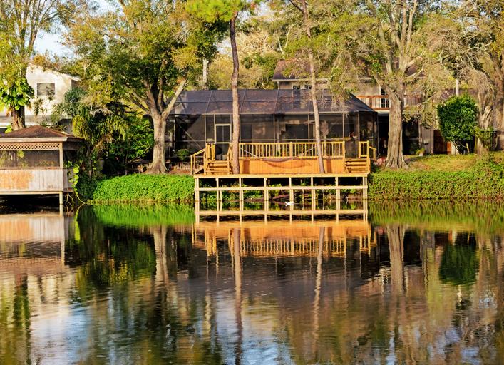 Keywords: house lake house forest jetty reflection nature architecture rural landscape soledad