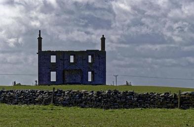 Keywords: house ruin old building abandoned wall stone damage brick outdoor decay architecture field grass