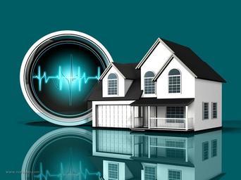 | Keywords: rhythm monitor beat pulse data render rendering illustration house home residential info information 3d illustration of a large glowing blue pulse monitor standing behind a simple white two story house on a reflective surface 3d illustration of a large glowing blue pulse monitor standing behind a simple white two story house on a reflective surface |
