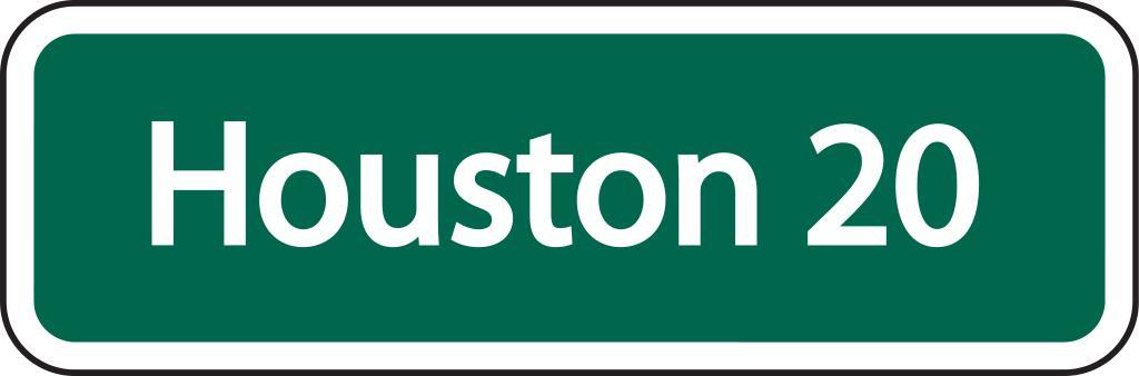 Keywords: houston ahead distance 20 twenty miles information highway sign signage motorists travel roadsign