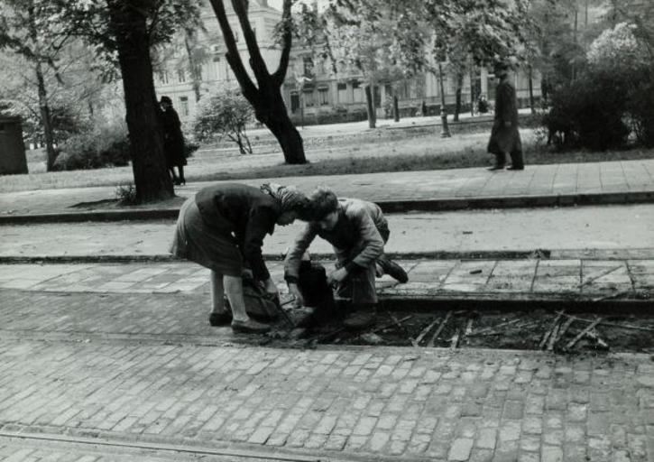 | Keywords: haarlem nederland bevrijding netherlands liberation tweede wereldoorlog tweedewereldoorlog woii wwii second wold war secondwoldwar world war two worldwartwo world war ii worldwarii second world war secondworldwar outdoor blackandwhite black and white Nationaal Archief / Spaarnestad Photo, SFA006001354 Tweede Wereldoorlog. Schaarste op bevrijdingsdag: kinderen roven houtblokjes tussen de tramrails vandaan voor de houtkachel/ het fornuis. 5 mei 1945. Wold War II. Liberation of Holland. Children nicking wood from tram rails to use as fuel in the stove. The Netherlands, location unknown. May 5, 1945. Collectie Spaarnestad Voor meer informatie en voor meer foto’s uit de collectie van Spaarnestad Photo, bezoek onze Beeldbank: www.spaarnestadphoto.nl/ U kunt ons helpen onze kennis van de fotocollecties te verrijken door tags en commentaren toe te voegen. Herkent u mensen of locaties of heeft u een bijzonder verhaal te vertellen bij één van de foto’s, laat dan een reactie achter (als u ingelogd bent bij Flickr) of stuur een mailtje naar: hhamelink@spaarnestadphoto.nl You can help us gain more knowledge on the content of our collection by simply adding a comment with information. If you do not wish to log in, you can write an e-mail to: hhamelink@spaarnestadphoto.nl Nationaal Archief / Spaarnestad Photo, SFA006001354 Tweede Wereldoorlog. Schaarste op bevrijdingsdag: kinderen roven houtblokjes tussen de tramrails vandaan voor de houtkachel/ het fornuis. 5 mei 1945. Wold War II. Liberation of Holland. Children nicking wood from tram rails to use as fuel in the stove. The Netherlands, location unknown. May 5, 1945. Collectie Spaarnestad Voor meer informatie en voor meer foto’s uit de collectie van Spaarnestad Photo, bezoek onze Beeldbank: www.spaarnestadphoto.nl/ U kunt ons helpen onze kennis van de fotocollecties te verrijken door tags en commentaren toe te voegen. Herkent u mensen of locaties of heeft u een bijzonder verhaal te vertellen bij één van de foto’s, laat dan een reactie achter (als u ingelogd bent bij Flickr) of stuur een mailtje naar: hhamelink@spaarnestadphoto.nl You can help us gain more knowledge on the content of our collection by simply adding a comment with information. If you do not wish to log in, you can write an e-mail to: hhamelink@spaarnestadphoto.nl |