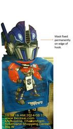 | Keywords: Currently the mask is in a plastic packaging and positioned at the front of the shirt n obstructing the selling point which is the cartoon image on the shirt.
