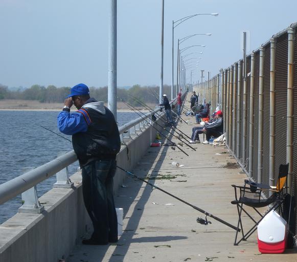 Keywords: howard beach new york river water men bridge sidewalk fishing recreation nature outside sky clouds