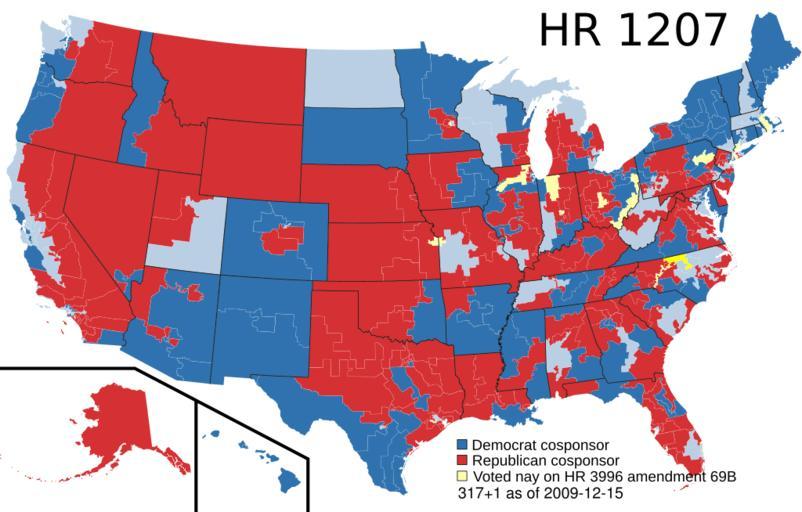 | Keywords: HR1207 Cosponsors.svg A map of all of the U S congressional districts as of the 111th Congress colors based on the party being held by the seat or its vacancy with full opacity for districts of sponsor and cosponsors of HR 1207 111th Congress and 33 opacity for districts of those not yet cosponsoring Updated to 279+1 Map coloring inspired by http //libertybrewcity blogspot com/2009/06/blog-post_12 html; Bill coloring matches http //www endthefed us/ Based off of File US Congrssional Districts 2009-07-24 goldfndr talk Goldfndr original upload log en wikipedia goldfndr page en wikipedia HR1207_Cosponsors svg 2009-07-25 06 30 Goldfndr 2583×1557× 1114869 bytes <nowiki> A map of all of the U S congressional districts as of the 111th Congress colors based on the party being held by the seat or its vac</nowiki> 2009 events Ron Paul SVG maps of the United States Congressional district maps of the United States 2010 in the United States |