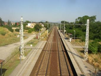 Keywords: Hrdly CZ railway station view from bridge towards NW 020.jpg Železniční zastávka Hrdly na páteřní trati 090 z Prahy do Děčína Pohled k severozápadu z mostu silnice 608 Doksany - Terezín vpravo nástupiště směr Lovosice/Děčín vlevo konec nástupiště směr Roudnice nad Labem/Praha a vesnice Hrdly část města Bohušovice nad Ohří okres Litoměřice Hrdly railway station on backbone 090 line from Prague to Děčín A view towards the northwest from bridge of Doksany - Terezín road trains bound for Děčín use the platform in the right trains bound for Prague the platform in the left Village of Hrdly is visible in the left bakground Own 2008-07 User Miaow Miaow <gallery> Image Hrdly_CZ_road_bridge_over_railway_station_024 jpg </gallery> 50 29 05 9 N 14 10 28 9 E region CZ Train stations in Ústí nad Labem Region Hrdly train station |