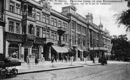 Keywords: Hretska-Kateryn.jpg uk Вигляд вул Г ецької із огу вул Кате ининської s 1890 http //viknaodessa od ua/old-photo/ ulitsa_grecheskaya author other versions PD-RusEmpire Postcards of Odessa Hretska St 30 Petrokokinos House Odessa in the 1890s
