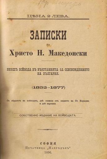 Keywords: Hristo-Makedonski-Zapiski.JPG Титулна ст аница на Записки на Х исто акедонски scanned 1896 Hristo Makedonski 1835 - 1916 PD-old 1896 book covers Title pages from Bulgaria Book covers from Bulgaria Hristo Makedonski Books in Bulgarian