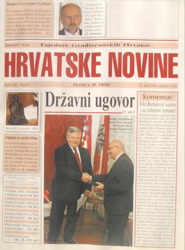 Keywords: Hrvatske Novine.JPG de Kroatische Wochenblatt Hrvatske Novine aus Burgenland hu Horvát hetilap Hrvatske Novine Burgenlandból Saját kép Pan Peter12 2010-06-08 Culture of Burgenland Periodicals of Austria