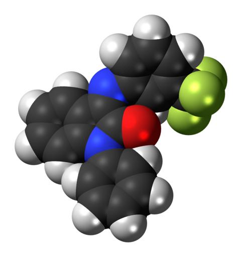 Keywords: HT-2157 molecule spacefill.png Space-filling model of the HT-2157 molecule a GAL-3 receptor antagonist C H O N F 2015-01-08 own DS Visualizer Jynto more from this user Ball-and-stick version cc-zero Images by Jynto Indolones Imines Trifluoromethylbenzenes Space-filling models |