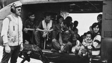 Keywords: Huey with refugees on USS Midway (CVA-41) off Vietnam in 1975.jpg Vietnamese refugees in VNAF Bell UH-1D/H Huey on the flight deck of the aircraft carrier USS Midway CVA-41 during Operation Frequent Wind in the South China Sea U S Navy photo http //www navysite de/cruisebooks/cv41-76/231 htm from the http //www navysite de/cruisebooks/cv41-76/index_018 htm USS Midway CV-41 1975-76 cruise book available at http //navysite de/cruisebooks/index html Navysite de 1975-04-29 USN PD-USGov-Military-Navy Aboard USS Midway CV-41 Operation Frequent Wind Air force of South Vietnam VNAF Bell UH-1 Iroquois in the Vietnam War |