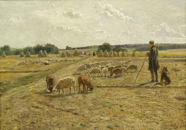 | Keywords: Hugo Mühlig Felderlandschaft mit Hütejunge.jpg Description Hugo Mühlig Felderlandschaft mit Hütejunge Hund und Schafherde Oil on canvas 44 x 61 cm Creator Hugo Mühlig PD-old-auto 1929 Source http //www duesseldorfer-auktionshaus planetactive com/ Shepherds in art Paintings of sheep Hugo Mühlig Images from Düsseldorfer Auktionshaus Artworks missing infobox template | ||||