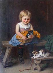 | Keywords: Hugo Oehmichen Kind mit Katzen.jpg Meine Katzenlieblinge not necessary 19th century Creator Hugo Oehmichen oil on canvas 48 × 34 cm PD-old-auto 1932 Paintings of girls with cats Women smiling in art Smiling girls Paintings of sitting girls Oil paintings of girls Paintings not categorised by year Location of museum or gallery missing Hugo Oehmichen Pets in art Paintings of girls with baskets | ||||