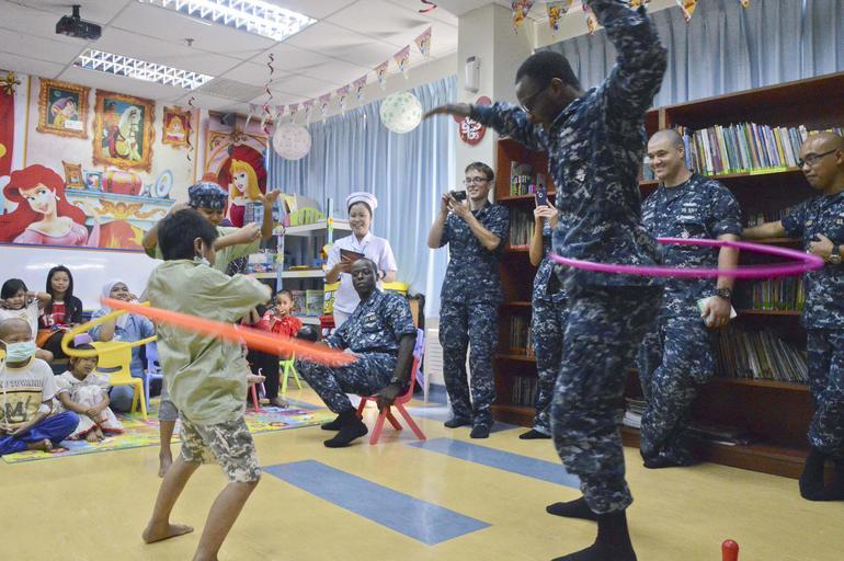 | Keywords: Hula-hoop contest 130301-N-UE250-093.jpg en Electronics Technician 3rd Class Tarwon Koah assigned to the submarine tender USS Frank Cable AS 40 challenges patients from the Likas Hospital's cancer unit to a hula-hoop contest Frank Cable sailors volunteered while in port to entertain children of both the child cancer and blood transfusion wards reading playing games music and dancing U S Navy photo by Mass Communication Specialist 2nd Class Corey Hensley/Released 2013-03-01 Corey Hensley https //www dvidshub net/image/879362 130301-N-UE250-093 2013-03-04 22 51 KOTA KINABALU MY PD-USGov-Military-Navy USS Frank Cable AS-40 Images from DoD uploaded by Fæ |