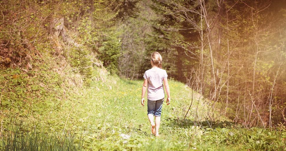 Keywords: human child girl away meadow nature alone