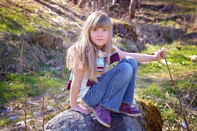 MAKE A MEME View Large Image human child girl blond long hair spring out nature stone rest