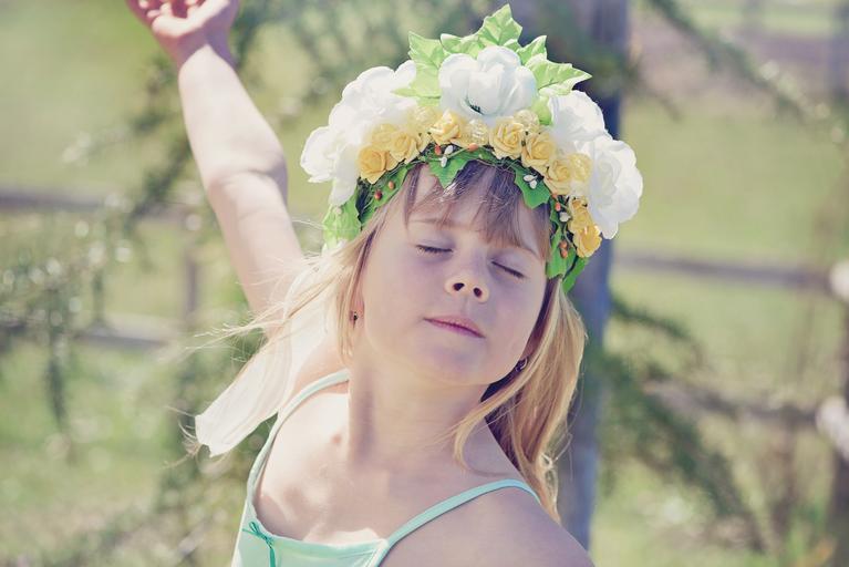 Keywords: human child girl flower child face blond headdress dance dreamy portrait