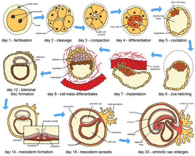 | Keywords: Human embryogenesis -2.png HumanEmbryogenesis svg en The first few weeks of embryogenesis in humans Beginning at the fertilised egg ending with the closing of the neural tube ;References overall http //www britannica com/EBchecked/topic/275660/human-embryology stages 2-6 from Gray's Anatomy plate 9 and http //www ncbi nlm nih gov/bookshelf/br fcgi book eurekah part A38994 rendertype figure id A38999 and http //openlearn open ac uk/file php/1638/SK220_1_021i jpg stage 7 from Johnson 2007 Essential Reproduction stage 8 from http //www utm utoronto ca/~w3bio380/lecture12 htm and http //humupd oxfordjournals org/content/vol14/issue4/cover dtl stage 9 from http //www6 ufrgs br/favet/imunovet/molecular_immunology/nidation jpg and http //embryology med unsw edu au/Medicine/BGDlab3_8 htm stage 10 from Larsen WJ 1993 Human Embryology and Gilbert 2006 Developmental Biology Fig 11 34 stages 11+12 from Gray's Anatomy plates 24-28 and http //scienceblogs com/pharyngula/2008/03/reproductive_history_writ_in_t php own Jrockley 2010-05-31 thumb left with numbers instead of arrows Embryology Human anatomy |