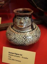 | Keywords: Human figure jar, Shipibo peoples, Ecuador, late 20th century, clay - Fernbank Museum of Natural History - DSC09939.JPG en Exhibit in the Fernbank Museum of Natural History Atlanta Georgia USA Photography was permitted in the museum without restriction 2012-03-17 00 32 39 own Daderot cc-zero Ethnographic items in the Fernbank Museum of Natural History Uploaded with UploadWizard Shipibo-Conibo | ||||