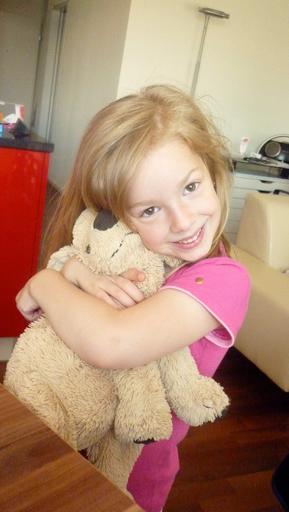 Keywords: human girl child teddy bear blond children soft toys stuffed animal