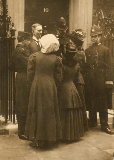 Keywords: suffrage the women's library thewomenslibrary women history politics hires monochrome 7JCC/O/02/008 Photograph, printed, paper, monochrome, suffragettes Daisy Solomon and Elspeth McClellan with a post boy, police and an official outside no.10 Downing Street, attempting to get themselves delivered as letters; printed inscription on reverse 'Copyright: World's Graphic Press Limited, 36-38 Whitefriars Street, Fleet Street, London. Please Acknowledge' 7JCC/O/02/008 Photograph, printed, paper, monochrome, suffragettes Daisy Solomon and Elspeth McClellan with a post boy, police and an official outside no.10 Downing Street, attempting to get themselves delivered as letters; printed inscription on reverse 'Copyright: World's Graphic Press Limited, 36-38 Whitefriars Street, Fleet Street, London. Please Acknowledge'