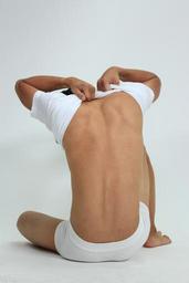 Keywords: human skin back male boby white clothes clothes undressing white background