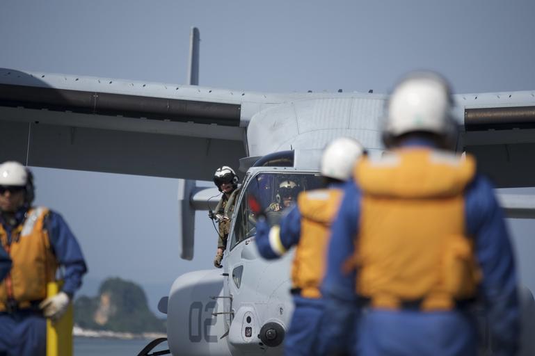 | Keywords: Humanitarian and Disaster Relief 160422-N-ZI646-256.jpg en 160422-N-ZI646-256 YATSUSHIRO BAY Japan April 22 2016 Japan Maritime Defense Force Sailors direct an MV-22B Osprey from Marine Medium Tiltrotor Squadron VMM 265 Reinforced attached to the 31st Marine Expeditionary Unit aboard the destroyer helicopter ship JS Hyuga DDH 181 At request of the Japanese government U S Forces Japan is providing airlift support to Japanese Self-Defense Forces JSDF A JSDF task force of more than 25 000 personnel is providing humanitarian and disaster relief assistance to the people affected by the magnitude 6 5 and 7 3 earthquakes that struck the Kumamoto area on 14 and 16 April 2016 U S Navy photo by Mass Communication Specialist 1st Class James Mitchell/Released <br>Unit Defense Imagery Management Operations Center 2016-04-22 Petty Officer 2nd Class James Mitchell https //www dvidshub net/image/2546441/humanitarian-and-disaster-relief 160422-N-ZI646-256 2016-04-22 09 28 JP PD-USGov-Military-Navy MV-22B Osprey 31st Marine Expeditionary Unit Images from DoD uploaded by Fæ |