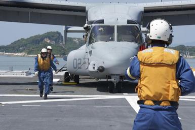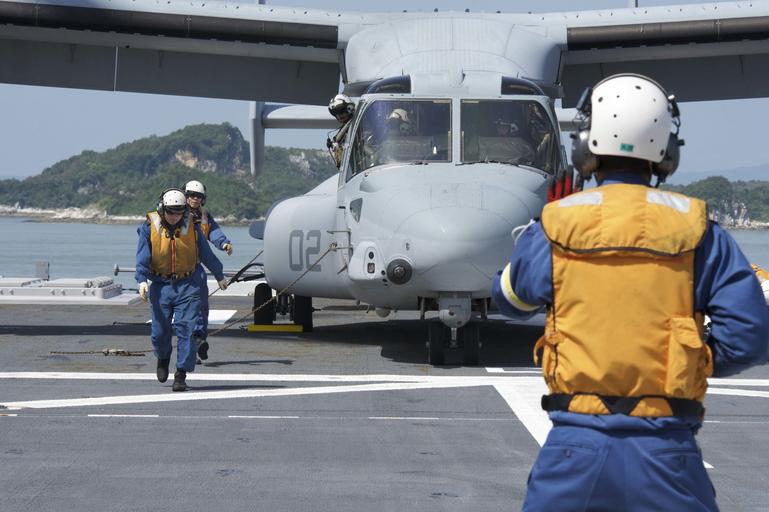 | Keywords: Humanitarian and Disaster Relief 160422-N-ZI646-124.jpg en 160422-N-ZI646-124 YATSUSHIRO BAY Japan April 22 2016 Japan Maritime Defense Force Sailors secure an MV-22B Osprey from Marine Medium Tiltrotor Squadron VMM 265 Reinforced attached to the 31st Marine Expeditionary Unit to the flight deck of the destroyer helicopter ship JS Hyuga DDH 181 At request of the Japanese government U S Forces Japan is providing airlift support to Japanese Self-Defense Forces JSDF A JSDF task force of more than 25 000 personnel is providing humanitarian and disaster relief assistance to the people affected by the magnitude 6 5 and 7 3 earthquakes that struck the Kumamoto area on 14 and 16 April 2016 U S Navy photo by Mass Communication Specialist 1st Class James Mitchell/Released <br>Unit Defense Imagery Management Operations Center 2016-04-22 Petty Officer 2nd Class James Mitchell https //www dvidshub net/image/2546732/humanitarian-and-disaster-relief 160422-N-ZI646-124 2016-04-22 12 07 JP PD-USGov-Military-Navy MV-22B Osprey 31st Marine Expeditionary Unit Images from DoD uploaded by Fæ |