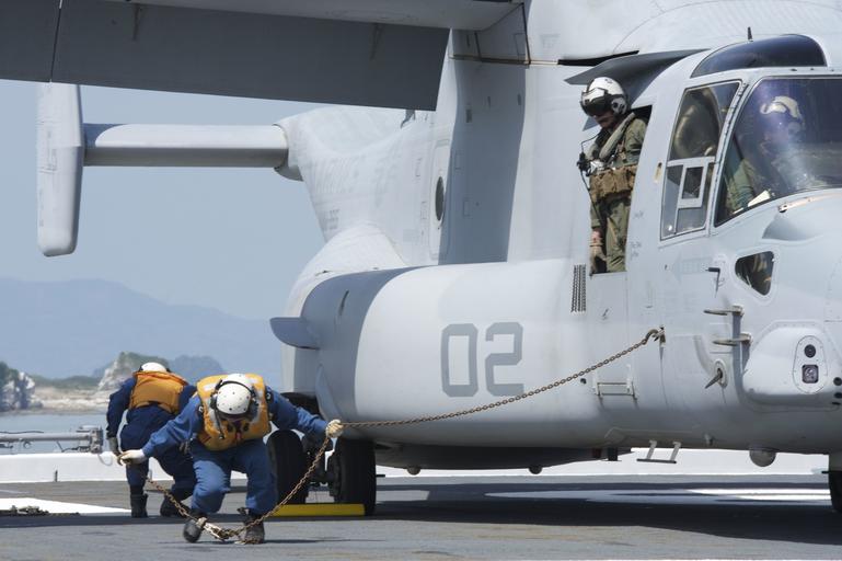 | Keywords: Humanitarian and Disaster Relief 160422-N-ZI646-119.jpg en 160422-N-ZI646-119 YATSUSHIRO BAY Japan April 22 2016 Japan Maritime Defense Force Sailors secure an MV-22B Osprey from Marine Medium Tiltrotor Squadron VMM 265 Reinforced attached to the 31st Marine Expeditionary Unit to the flight deck of the destroyer helicopter ship JS Hyuga DDH 181 At request of the Japanese government U S Forces Japan is providing airlift support to Japanese Self-Defense Forces JSDF A JSDF task force of more than 25 000 personnel is providing humanitarian and disaster relief assistance to the people affected by the magnitude 6 5 and 7 3 earthquakes that struck the Kumamoto area on 14 and 16 April 2016 U S Navy photo by Mass Communication Specialist 1st Class James Mitchell/Released <br>Unit Defense Imagery Management Operations Center 2016-04-22 Petty Officer 2nd Class James Mitchell https //www dvidshub net/image/2546729/humanitarian-and-disaster-relief 160422-N-ZI646-119 2016-04-22 12 07 JP PD-USGov-Military-Navy MV-22B Osprey 31st Marine Expeditionary Unit Images from DoD uploaded by Fæ |