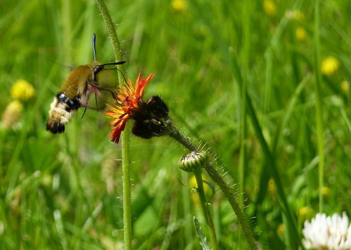Keywords: hummingbird moth wild flower plant meadow orange yellow insect flying flower insect wildlife nature garden orange hawkweed red king devil