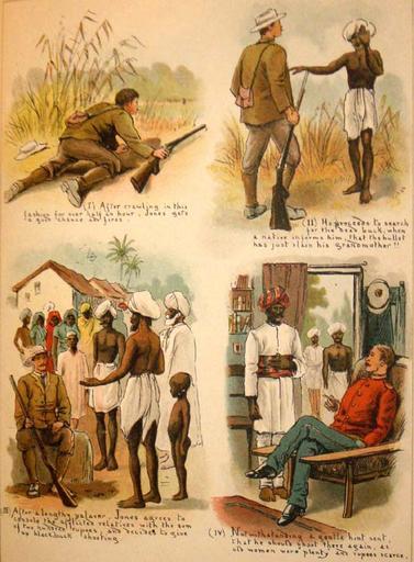 Keywords: Hunting 201.jpg en Lloyd's Sketches of Indian Life London 1890 chromolithographs enhanced with gum arabic Arrival in Bombay native women-- visions of Lalla Rookh waking in the morning street scene Central India revenge for noise donkey-riders soldiers croquet dust-sprinkling at the club The Alligator's Dinner Hour Camping Himalayas families hunting porters various sketches 1 various sketches 2 various sketches 3 various sketches 4 Source ebay Aug 2005 1890 http //www columbia edu/itc/mealac/pritchett/00routesdata/1800_1899/dailylife_drawings/lloyd1890/lloyd1890 html Lloyd's Sketches PD-Art Uploaded with UploadWizard W Lloyd 'Lloyd's Sketches of Indian Life' London Chapman Hall 1890 |