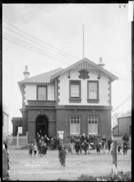 Keywords: blackandwhite monochrome outdoor architecture photo border building black and white Central Post Office, Huntly, photographed by William Archer Price, circa 1910s. A large group of children, mostly boys, are outside the Post Office. Inscriptions: Inscribed - Photographer's title on negative -bottom left: Central Post Office. Huntly. 212. Quantity: 1 b&w original negative(s). Physical Description: Dry plate glass negative 6.5 x 4.75 inches Huntly Post Office, ca 1910s. Price, William Archer, 1866-1948 :Collection of post card negatives. Ref: 1/2-001746-G. Alexander Turnbull Library, Wellington, New Zealand. natlib.govt.nz/records/23072749 Central Post Office, Huntly, photographed by William Archer Price, circa 1910s. A large group of children, mostly boys, are outside the Post Office. Inscriptions: Inscribed - Photographer's title on negative -bottom left: Central Post Office. Huntly. 212. Quantity: 1 b&w original negative(s). Physical Description: Dry plate glass negative 6.5 x 4.75 inches Huntly Post Office, ca 1910s. Price, William Archer, 1866-1948 :Collection of post card negatives. Ref: 1/2-001746-G. Alexander Turnbull Library, Wellington, New Zealand. natlib.govt.nz/records/23072749 |