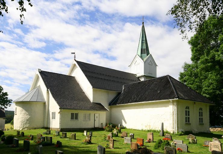 Keywords: Hurum kirke NO.jpg Hurum kirke med Det huitfeldtske gravkapell nærmest Own 2007-07-20 Mahlum Hurum kirke