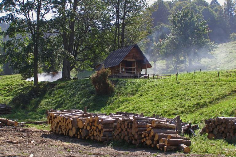 Keywords: hut cottage mountains shepherd's hut wood smoke szczawnica jaworki poland cheese making summer holidays