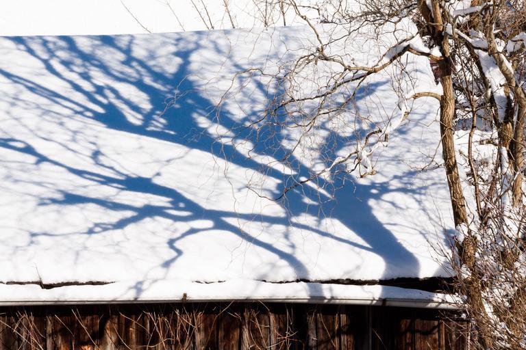 Keywords: hut roof wood tree snow shadow winter old barn log cabin weathered scale decay shadow play fund background