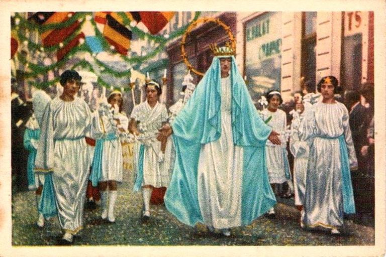 | Keywords: Huy, Fêtes Mariales.jpg en Old postcard from the 1920s or 30s of the Fêtes Mariales a procession that takes place every seven years in Huy Belgium 2014-06-08 16 28 37 http //www delcampe net/page/item/id 258246200 var Cote-dOr-Belgische-Folklore-Belge-Nr19-Huy-Procession-des-Fetes-Mariales--Hoei-Processie-der-Mariale-Feesten language D html Unknown photographer postcard Custom license marker 2014 06 08 70 Uploaded with UploadWizard Culture of Huy Postcards of Belgium | ||||