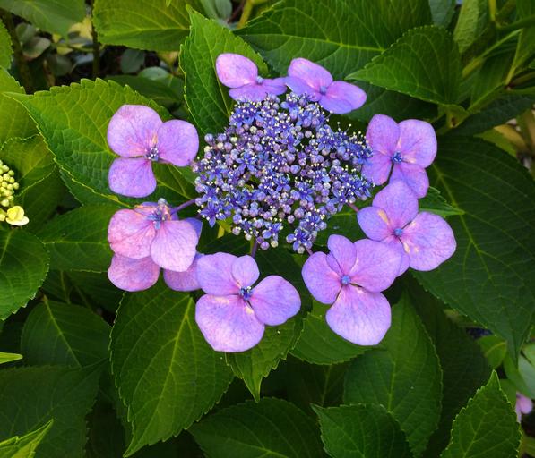 Keywords: hydrangea flowers purple pink pastel green leaf gotanda shinagawa tokyo japan