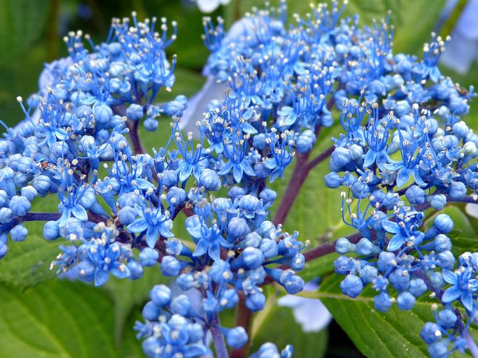 Keywords: hydrangeas flowers pink purple blue nature blossom garden plant leaves