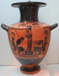 Keywords: Hydria attributed to the Leagros Group, c. 575-500 BCE, Lowe Art Museum.JPG en Hydria water jar attributed to the Leagros Group c 575-500 BCE pottery and paint Lowe Art Museum own Wmpearl photo 2014 Cc-zero Ceramics in the Lowe Art Museum Greece Leagros Group Ancient Greek pottery hydriai |