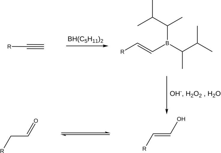 | Keywords: Hydroboration-alkyne.svg en Hydroboration of an alkyne with disiamylborane nl Hydroborering van een alkyn met disiamylboraan Own Typhoner <span class signature-talk >talk</span> 2010-07-30 PD-chem Hydroboration of an alkyne with disiamylborane made with ChemDraw Please drop me a note if you need the source file Hydroboration reactions Reactions of alkynes |