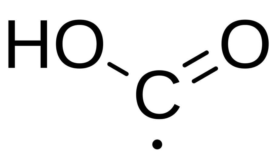 Keywords: Hydrocarboxyl radical.svg Chemical structure of hydrocarboxyl radical Own 17 13 29 October 2016 UTC Ed Edgar181 Radicals Atmospheric chemistry