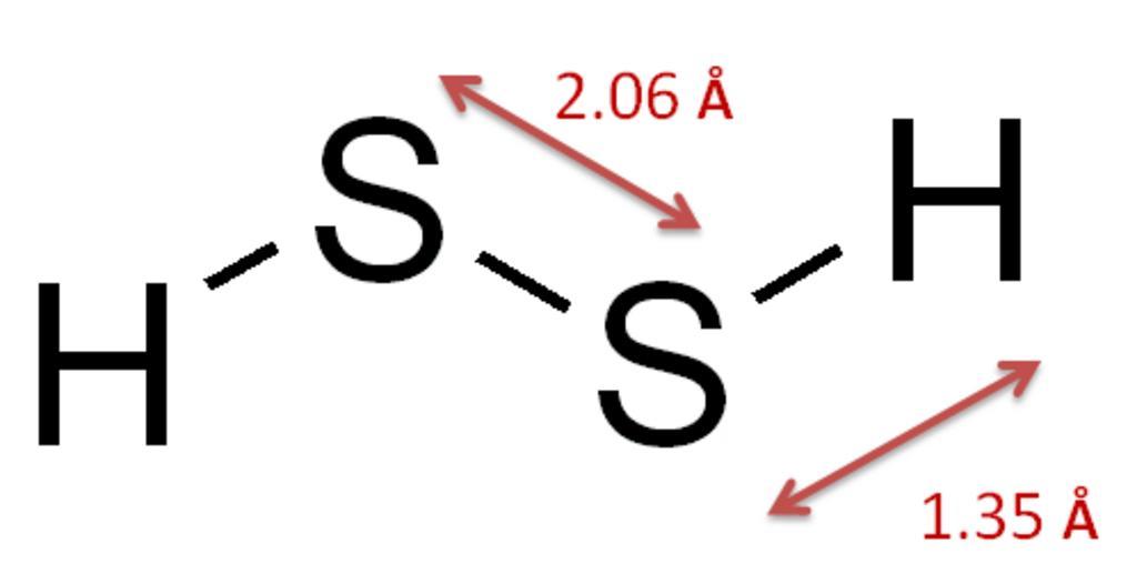 Keywords: Hydrogen disulfide bonds.png chemical structure of hydrogen disulfide disulphide with bond lengths Own 2009-06-12 Edgar181 <span class signature-talk >talk</span> Hydrogen disulfide