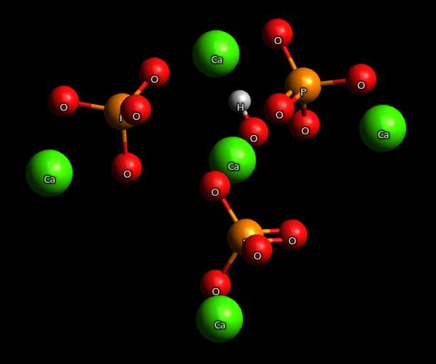 | Keywords: Hydroxylapatit (auch Hydroxyapatit, Apatit-(CaOH), dargestellt von Avogadro).png de Hydroxylapatit auch Hydroxyapatit Apatit- CaOH - Visualisierung der Strukturformel Für die korrekte Anordnung mehrerer Moleküle innerhalb des Kristallgitters siehe https //www mineralienatlas de/lexikon/index php/MineralData mineral Hydroxylapatit Mineralienatlas 2015-06-09 own Cmuelle8 other versions Hydroxylapatit auch Hydroxyapatit Apatit- CaOH cml <syntaxhighlight lang xml > <molecule> <atomArray> <atom id a1 elementType Ca formalCharge -5 x3 0 000000 y3 0 000000 z3 0 000000 /> <atom id a2 elementType P x3 1 166689 y3 2 724594 z3 2 137879 /> <atom id a3 elementType O formalCharge -1 x3 2 197360 y3 4 038984 z3 2 604938 /> <atom id a4 elementType O x3 1 092400 y3 2 900147 z3 0 413987 /> <atom id a5 elementType O formalCharge -1 x3 1 796269 y3 1 187627 z3 2 644244 /> <atom id a6 elementType O x3 -0 243281 y3 2 988950 z3 2 729297 /> <atom id a7 elementType Ca formalCharge -6 x3 -4 235100 y3 3 336962 z3 -2 594540 /> <atom id a8 elementType P x3 -2 960617 y3 -1 150439 z3 2 918302 /> <atom id a9 elementType O formalCharge -1 x3 -1 798965 y3 -1 166971 z3 4 207277 /> <atom id a10 elementType O formalCharge -1 x3 -2 229655 y3 -1 369379 z3 1 362062 /> <atom id a11 elementType O formalCharge -1 x3 -4 044232 y3 -2 502814 z3 3 000518 /> <atom id a12 elementType O x3 -3 797359 y3 0 156077 z3 2 904460 /> <atom id a13 elementType Ca formalCharge -6 x3 2 481891 y3 4 713208 z3 0 440390 /> <atom id a14 elementType O x3 1 608266 y3 -1 607631 z3 -0 181262 /> <atom id a15 elementType Ca formalCharge -5 x3 0 000000 y3 -0 000000 z3 3 415354 /> <atom id a16 elementType P x3 -2 681778 y3 1 310955 z3 -1 164521 /> <atom id a17 elementType O formalCharge -1 x3 -1 671057 y3 1 540681 z3 0 226590 /> <atom id a18 elementType O formalCharge -1 x3 -2 208407 y3 2 284041 z3 -2 519926 /> <atom id a19 elementType O formalCharge -1 x3 -4 312730 y3 1 828018 z3 -0 880967 /> <atom id a20 elementType O x3 -2 720612 y3 -0 177061 z3 -1 602605 /> <atom id a21 elementType Ca formalCharge -6 x3 -3 400697 y3 -3 284381 z3 0 952604 /> <atom id a22 elementType H x3 2 085416 y3 -1 574359 z3 0 686072 /> </atomArray> <bondArray> <bond atomRefs2 a2 a3 order 1 /> <bond atomRefs2 a2 a4 order 1 /> <bond atomRefs2 a2 a5 order 1 /> <bond atomRefs2 a2 a6 order 2 /> <bond atomRefs2 a8 a9 order 1 /> <bond atomRefs2 a8 a10 order 1 /> <bond atomRefs2 a8 a11 order 1 /> <bond atomRefs2 a8 a12 order 2 /> <bond atomRefs2 a16 a17 order 1 /> <bond atomRefs2 a16 a18 order 1 /> <bond atomRefs2 a16 a19 order 1 /> <bond atomRefs2 a16 a20 order 2 /> <bond atomRefs2 a14 a22 order 1 /> </bondArray> </molecule> </syntaxhighlight> cc-zero Uploaded with UploadWizard Apatite- CaOH ImageNote 1 194 42 191 72 576 480 2 O<sup>-</sup> Ca<sup>2+</sup> O<sup>-</sup> ImageNoteEnd 1 ImageNote 2 271 166 76 100 576 480 2 O<sup>-</sup> Ca<sup>2+</sup> OH<sup>-</sup> ImageNoteEnd 2 ImageNote 3 415 118 127 95 576 480 2 O<sup>-</sup> Ca<sup>2+</sup> O<sup>-</sup> ImageNoteEnd 3 ImageNote 4 255 334 101 123 576 480 2 O<sup>-</sup> O<sup>-</sup> Ca<sup>2+</sup> ImageNoteEnd 4 ImageNote 5 27 152 120 116 576 480 2 O<sup>-</sup> O<sup>-</sup> Ca<sup>2+</sup> ImageNoteEnd 5 |