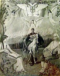 Keywords: Краљ Петар I на коњу.jpg sr ÐšÑ Ð°Ñ™ ÐŸÐµÑ‚Ð°Ñ I на коњу en A patriotic postcard from Serbia depicting King Petar I on a horse followed by three angels The Serbian eagle is seen at the top while a maiden and a guslar are seen at the sides before 1921 cite web ÐšÑ Ð°Ñ™ ÐŸÐµÑ‚Ð°Ñ I на коњу https //scontent-b-fra xx fbcdn net/hphotos-xfa1/t31 0-8/s720x720/277416_214292805274942_2635645_o jpg author other versions PD-Serbia Uploaded with UploadWizard Peter I of Serbia Serbian eagle Gusle 20th-century art in Serbia Patriotism in art Personifications of Serbia Postcards of Serbia Serbian patriotism