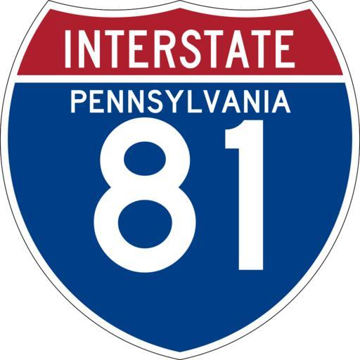 | Keywords: I-81 (PA).svg en 600 mm by 600 mm 24 in by 24 in Interstate shield made to the specifications of the http //mutcd fhwa dot gov/SHSm/Guide pdf 2004 edition of Standard Highway Signs sign M1-1 Uses the http //www triskele com/fonts/index html Roadgeek 2005 fonts United States law does not permit the copyrighting of typeface designs and the fonts are meant to be copies of a U S Government-produced work anyway Colors are from http //mutcd fhwa dot gov/kno-colorspec htm Pantone Red 187 and Blue 294 converted to RGB by http //www reeddesign co uk/test/pantone2rgb html The outside border has a width of 1 1 mm and a color of black so it shows up; in reality signs have no outside border Own Jeff02 2008-08-28 Interstate Highway shields with name of state 81 Pennsylvania |