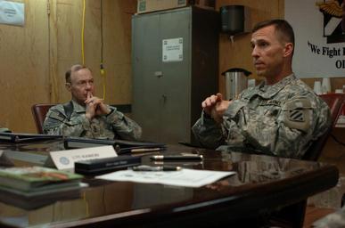 | Keywords: I Corps commander visits 3rd CAB DVIDS84724.jpg en Col Dan Ball right commander of 3rd Combat Aviation Brigade 3rd Infantry Division briefs Lt Gen Charles H Jacoby Jr commander of I Corps on the capabilities and structure of the 3rd CAB April 17 at Camp Striker Baghdad 2008-04-17 Sgt 1st Class Thomas Mills https //www dvidshub net/image/84724 84724 2008-04-18 16 05 CAMP STRIKER IQ PD-USGov Charles H Jacoby Jr 3rd Infantry Division United States Camp Striker Images from DoD uploaded by Fæ |