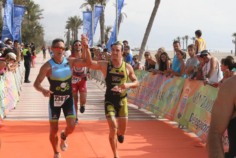 Keywords: Con un magnífico tiempo de 43 minutos y 46 segundos Pablo Salmerón, , del equipo Tritrain4you-O2-Cabberty, dominó la prueba de principio a fin y se proclamó ganador del I Triatlón Cros Ciudad de Roquetas. En segundo lugar en la categoría general masculina finalizó Sergio Fernández, del Club Ego Run.In, con un crono de 44:45. El tercer puesto lo ocupó Juan Ignacio Campos, del CT Rincón de la Victoria, con una marca de 46:23.